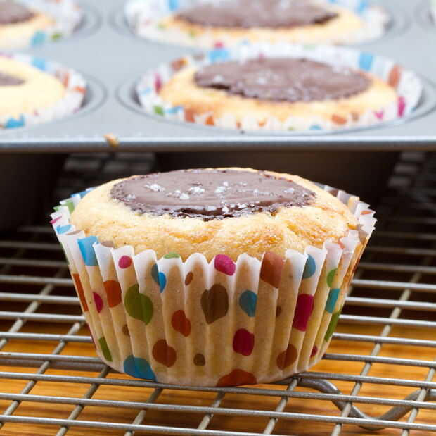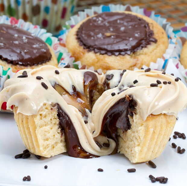 Prensa una sal Chocolate galletas taza de mantequilla en cada cupcake.