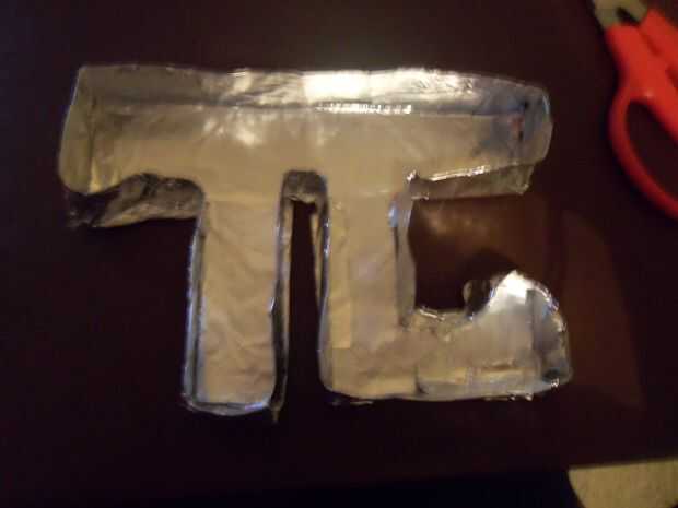 Luego, corta tu pi forma hacia fuera encendido algo horno fuerte y lo suficientemente robustos para pastel. Utilicé un molde de brownie de metal desechable y cortar mi forma de la parte inferior de la bandeja.