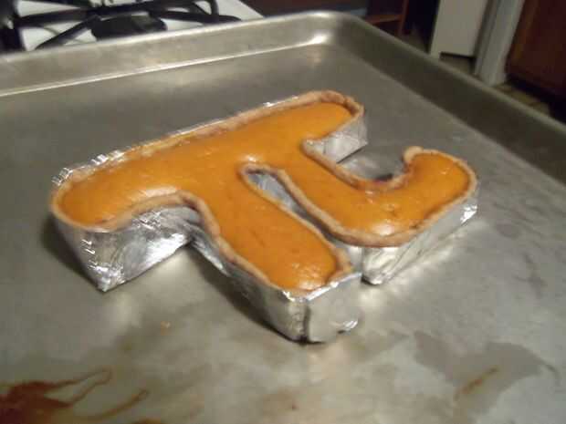 Para celebrar el día Pi este año optaron por una calabaza variedad de pastel, pero dio un paso más: rayas de tigre. Sí, me refiero al libro cum película de Martel, "Vida de Pi". No tengo un toque de un chef pastelero para la presentación, lament