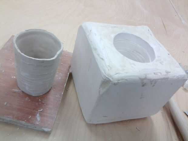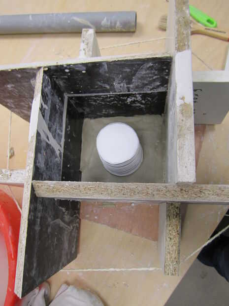 Pic4: Después de tener una pared lo suficientemente gruesa como para el modelo había derramado el resto líquido porcelana de regreso en el envase. El modelo necesita secar un poco ahora. Se reducirá así podrás eliminarlo de la forma de negativ de bloque de cemento.