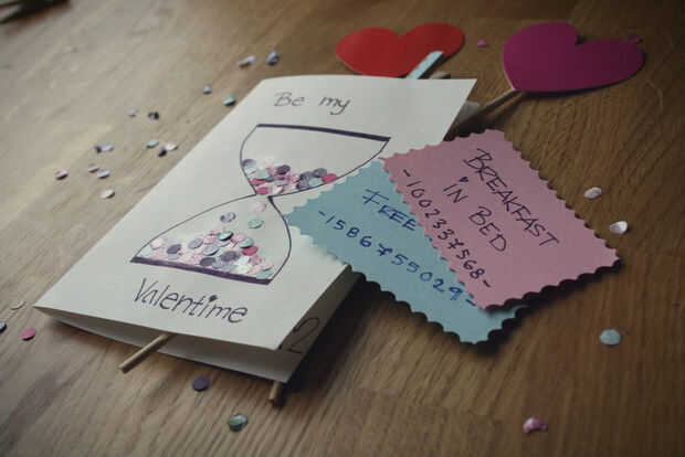 Bricolaje, Fácil, Barato, Regalo, Simple, San Valentín, Día de San Valentín, Amor, Tiempo, Tarjeta, Corazones, Cupones, Tarjeta de regalo