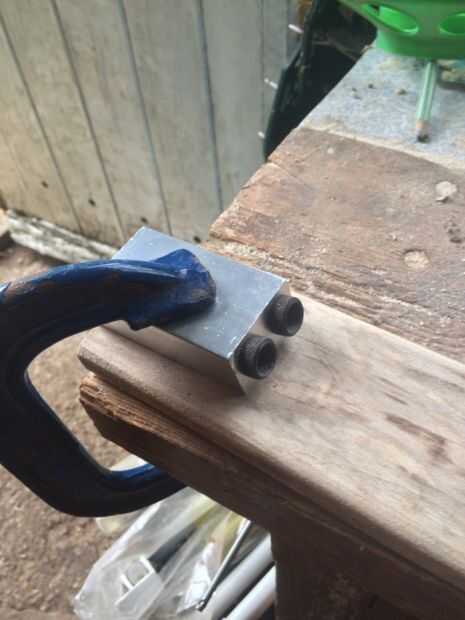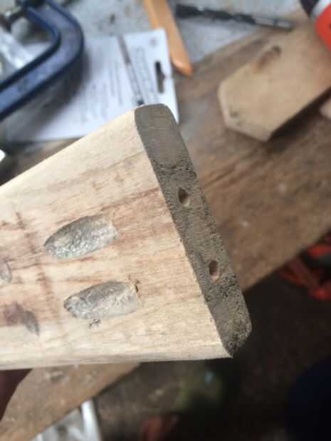 El hueso posterior es lo que conecta la percha pantalón a la camisa colgando sección. Esto se corta de otra tabla a unos 370 mm arena y redondear los bordes. Ahora la plantilla de agujero de bolsillo se fija a la madera por una abrazadera y taladro 10 mm broca a medio camino, hasta que haya suficiente espacio para las cabezas de los tornillos no sentía al ejecutar su mano a lo largo. Ahora conseguir una broca más pequeña, preferiblemente un 3 mm y un taladro desde el extremo en un ángulo ligero para llegar a la ranura que acaba de crear con la plantilla del agujero. Repetir este proceso para ambos extremos.