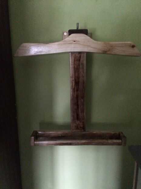 Para asegurarse de que los agujeros fueron en el lugar correcto en la pared he hecho un roce de la parte posterior de la pared que muestra donde estaban los agujeros. Obviamente usted necesita utilizar el reverso para que coincida en este, con un nivel de burbuja y cinta de enmascarar Coloque el dibujo en la pared donde el valet es para montarse. Si usted dobla la parte inferior del documento para crear un canal que va coger la mayoría de los desechos. Taladro en la pared, he utilizado una broca de 9 mm y pónganse los tacos, huecos para los tornillos en la pared con los 4 tornillos 5 x 50 mm a través de la pre perforados has hecho antes. Poner la varilla por el agujero en la pared y atornillar la tuerca de mariposa de M8 y su valet montado de pared es completado!