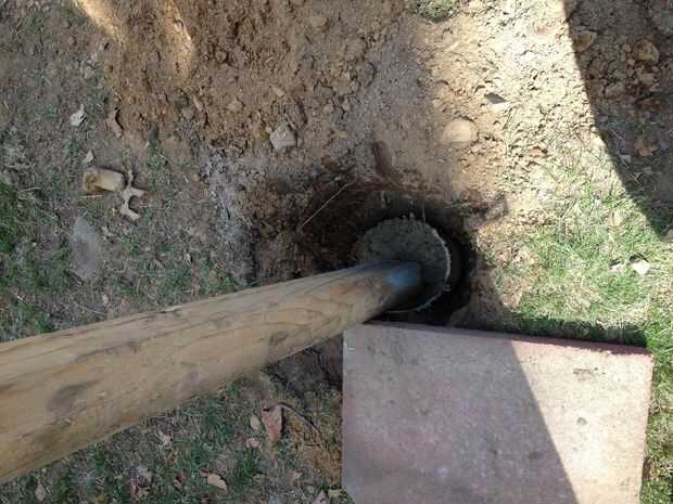 Una vez que llenó el agujero detrás con la suciedad y embalar abajo como nos fuimos. Sin duda puede utilizar 2 pies de cemento pero después de probar uno sentí que esto fue suficiente para apoyar los mensajes sin necesidad de mover... Si tengo que quitar su bastante fácil cavar hacia abajo un poco y sawzall él apagado. Incluso si tengo que sustituir unos su no tan malo entonces si usé cemento todo.