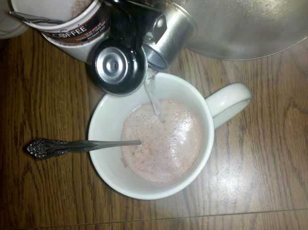 luego agregar agua caliente suficiente para llenar la Copa. mi taza es de 16 onzas y sólo llenarlo.