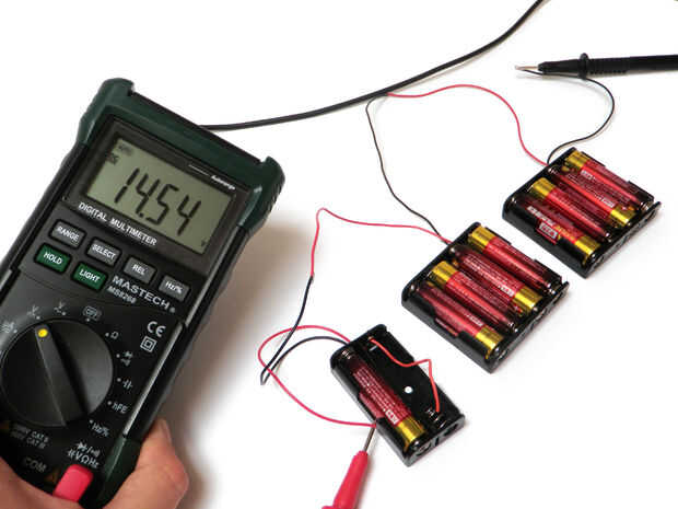 Usted puede mirar mis fotos y diciendo que los valores no cuadran. Tenga en cuenta que las baterías nuevas tienen más voltaje que están clasificados para. Cuando pones en serie, este excedente comienza a sumar significativamente. Por esta razón, si un voltaje exacto es importante en tu circuito, utilice siempre un regulador de voltaje. Si usted decide utilizar un regulador de voltaje, asegúrese de que tiene una fuente de alimentación clasificada para algunos voltios más que el regulador, o corres el riesgo de en-lo.