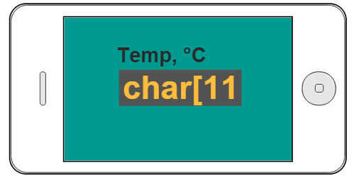 Ir al editor online RemoteXY y crear la interfaz de administración. Consiste en un campo de texto, a través de la cual se transmisión la temperatura medida y una etiqueta de texto. Véase la imagen.