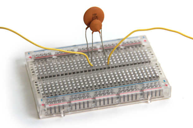 Como ejemplo conectado junto a 0.1uF y un 0.01uF condensador en paralelo en una placa en la figura 1, la capcitance total entre los cables amarillos es 0.01 + 0.1 = 0.11uF.