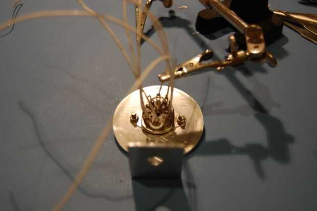 No usé perf board o placa de circuito. En cambio, solo soldar componentes en la posición más eficiente, asegurándose de no cruzar los cables. Siga el esquema y soldar cada pieza en su lugar. Use alambres de corte a la longitud cuando sea necesario. Usé alambre AWG teflon cubierto 24, es muy agradable de utilizar.