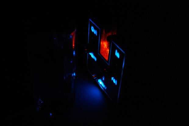Mi primera versión, el ValveLiTzer Redux, cuenta con un diseño destacado "Figura 8" con el tubo que sobresale de las placas de aluminio grabado al agua fuerte, superior y una base azul que brilla intensamente.