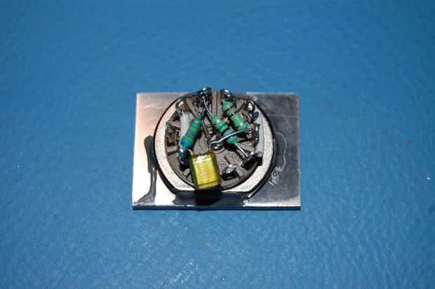Varios componentes también pueden soldarse directamente en uno de los pines a la otra. Siga el esquema y la soldadura de las resistencias y uno de los condensadores en lugar, haciendo que no haya cortocircuitos.