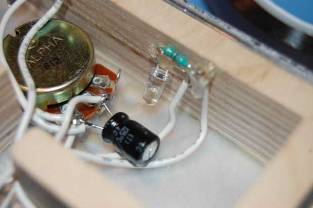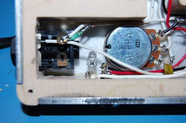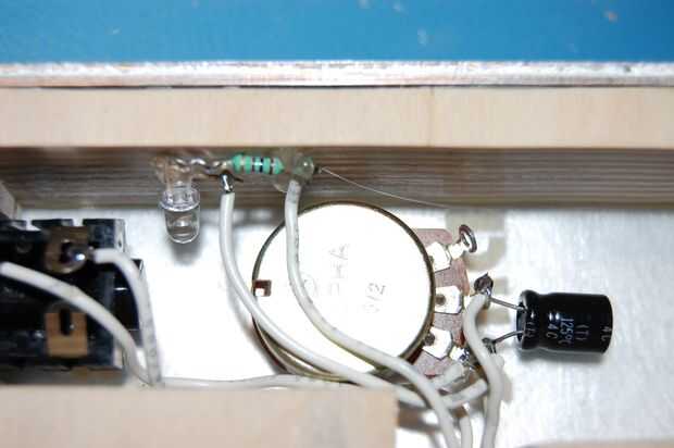 He añadido un total de cinco LEDs azul, uno para cada etiqueta. Elegí azul porque el destinatario del pedal es daltónico no puede ver rojo o verde - de lo contrario puedo han utilizado verde en su lugar. Blanco LED realmente se vería bastante agradable, que hasta pienso que.
