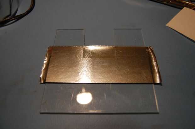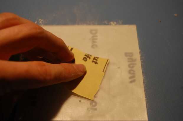 Empezar colocando una capa de cinta adhesiva en la parte superior del plástico. Debe ser absolutamente plana sin arrugas. Los bordes deberán estar alineados perfectamente con ninguna costura - levantar el plástico a una fuente de luz para no asegurarse de que haya fugas de luz a través. Recortar la cinta al ras con el borde del plástico. Puede utilizar un objeto romo, liso para aplanar más la cinta contra el plástico. Usé el mango en un par de tijeras.