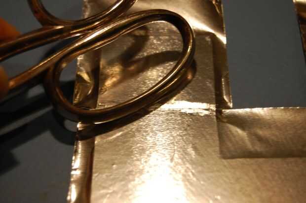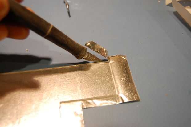 Con todas las letras cortadas, retire la plantilla de papel y cuidadosamente aplane los bordes de la cinta de conducto levantado. Sólo empuje hacia abajo, no de lado a lado, de lo contrario puede romperse el aluminio.