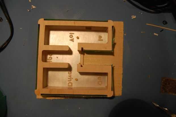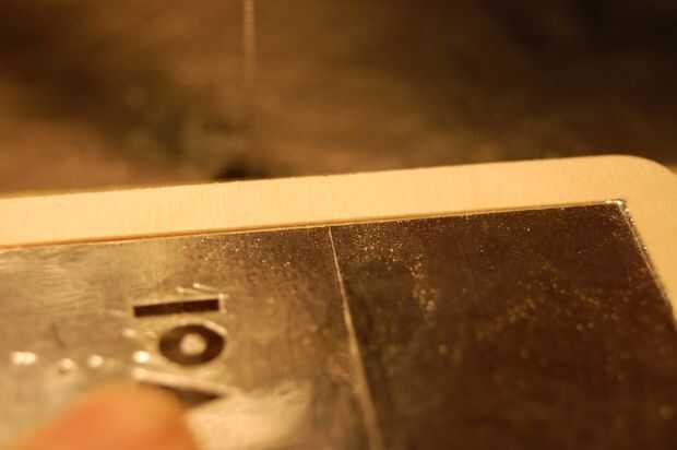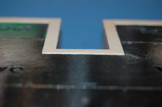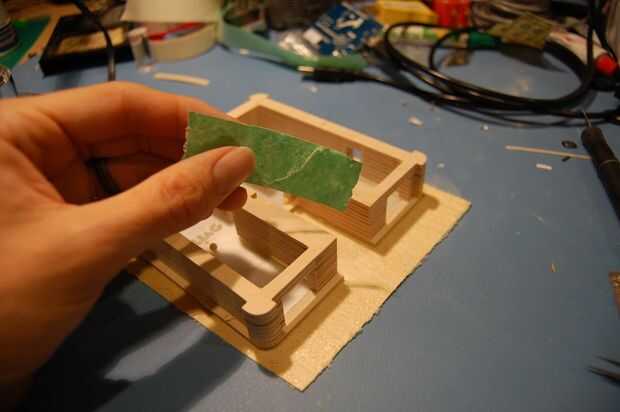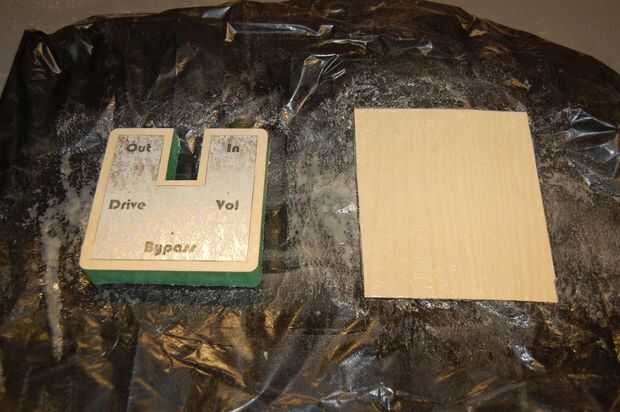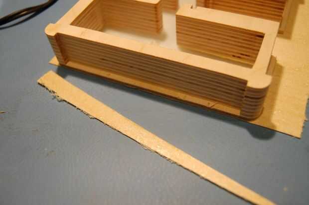 Con el bisel en el lugar, el pop en la capa de plástico de la máscara de etiqueta. En mi caso, el plástico fue realmente medio milímetro más delgado que la madera, causando un borde visible en la transición. Ha solucionado el problema mediante el encolado de piezas estrechas de madera de la chapa todo el camino alrededor del interior saliente. Que el plástico que se obtiene coincidirá con el espesor de la chapa de madera y no necesita hacerlo.