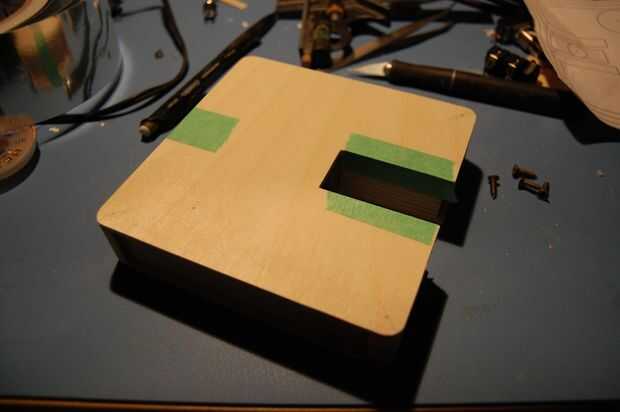 Atornille los cuatro tornillos. Debe quedar al ras con la parte inferior de la caja. Cuando esté satisfecho, retire la cinta adhesiva.