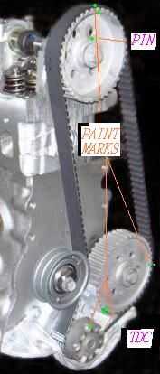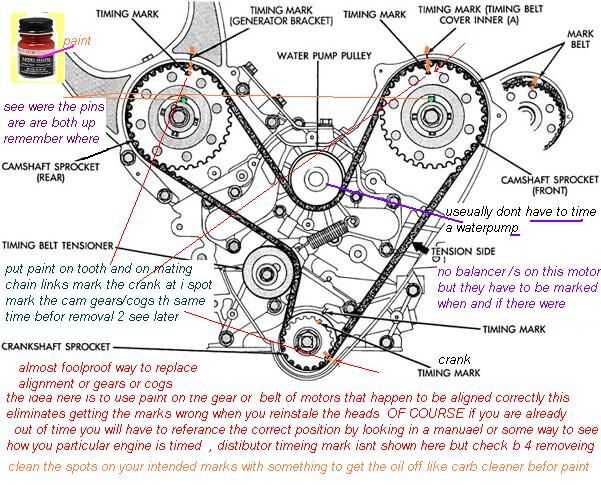 En el pequeño cilindro 4 motores con no en bloque balance rs o tal vez una sola leva puede probablemente obtener con sólo pintar las marcas sobre el acoplamiento de cadena y engranaje o a la banda y su corona para cinturón