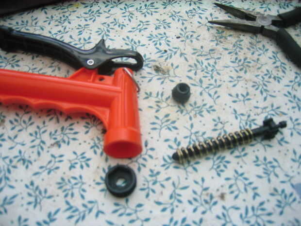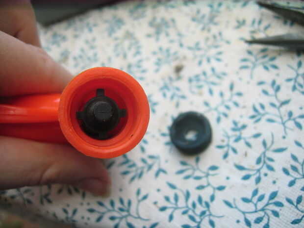 Cuando tienes el frente, desenroscar la tuerca de plástico pequeño desde el otro extremo y extraer las vísceras.