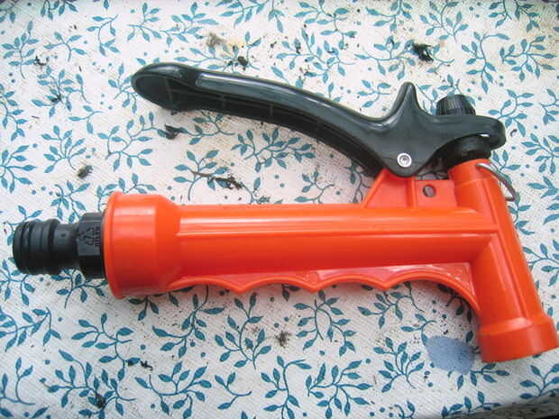 Ahora, sin el resorte, no tiene nada manteniendo el eje plástico de la manija, la voluntad de eje feliz ir en posición abierta, la tuerca es empujada hacia arriba por el mango, pero no empuje hacia atrás.