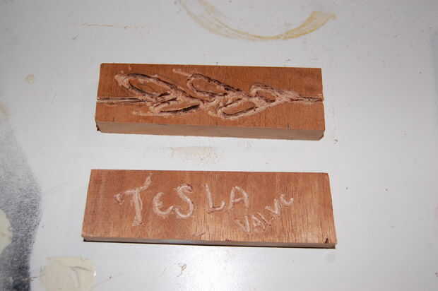 En primer lugar, marcar un patrón para la válvula de Tesla en su material. Tome nota especial de los ángulos de conexión de cada 'lóbulo' para el canal central. Esto es lo que crea el efecto de la regeneración.