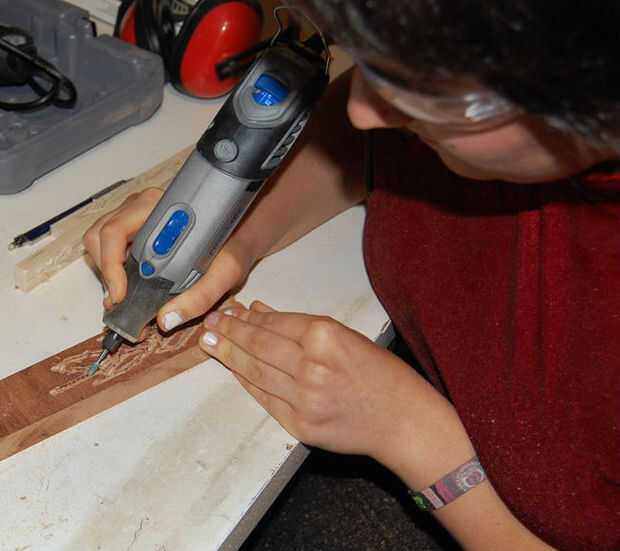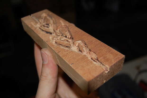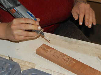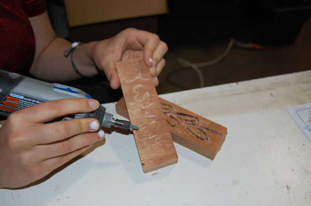 Después de marcado, iniciar lentamente esculpiendo el patrón utilizando el grabado/talla accesorios en tu kit Dremel. La profundidad y la complejidad del patrón hace la herramienta pequeña y flexible ideal para trabajos como este.