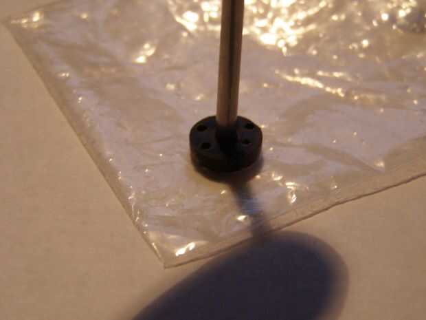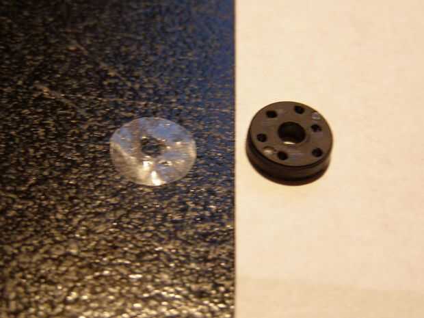 Coloque el pistón en bolsa de plástico y marque el centro del pistón con la flecha de descarga y corte alrededor del pistón y el agujero en el medio con su exacto para obtener un círculo de plástico con un agujero en el medio. Se trata de la válvula.