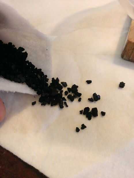 Encima de la capa de drenaje: Athin de capa de carbón activado, como se usaría en el filtro del acuario, debe ser utilizado.