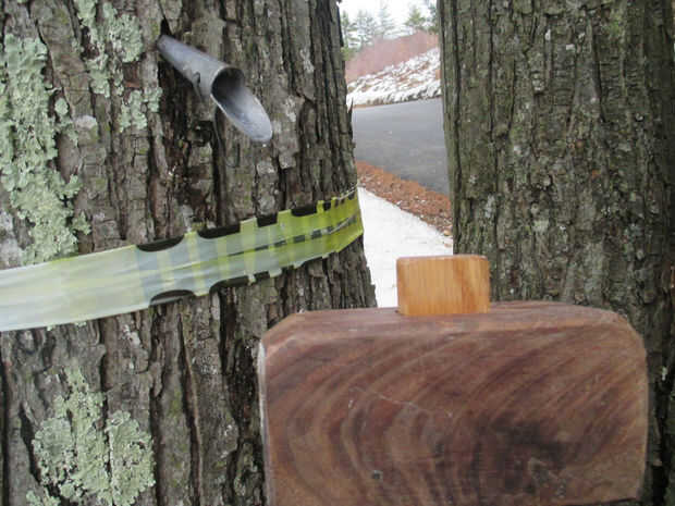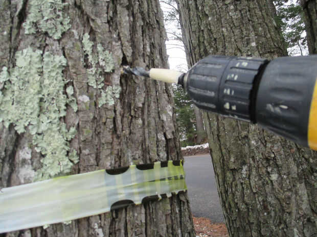 No marcar con cinta de más de 1 3/4" profundidad en el taladro bit... o un cincel. El lugar especial donde las gotas de líquido está entre la corteza y que otras cosas, por lo que no necesitará perforar en gran parte, lo suficiente como para poner el Spile (más que un poco). Hecho de materia O, si empujas el Spile en demasiado, te has perdido el barco... o el río, más concretamente. Puede perforar el agujero perfecto, en el ángulo perfecto, martillo el Spile con el más lindo de mazos y puente de ese río. ¿Entonces, utilizar un toque ligero con ese mazo, vale?