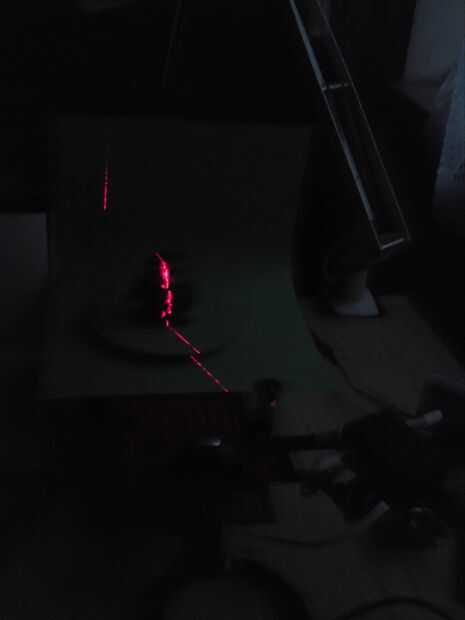 Cuando terminen todos los pasos anteriores, podemos iniciar la exploración. Actualmente, código es escuchas, así que no es vista en vivo. Para establecer correctamente la webcam, estoy usando ejemplos de librería GSVideo de formulario de código de GettingStartedWithCaptureWin. Mejor análisis se hacen cuando no hay ningún rayo, así que cierre el escáner en algún recinto será buena idea. Si no tienes ninguno, esperar hasta la noche, como yo. Encienda la fuente de alimentación, encienda el láser, hit Run en IDE de procesamiento. Espere hasta que la exploración está lista. Usted conseguirá *.asc archivo, que contiene las coordenadas cartesianas de cada punto.