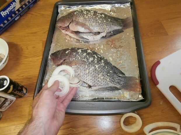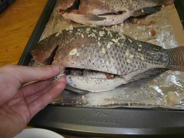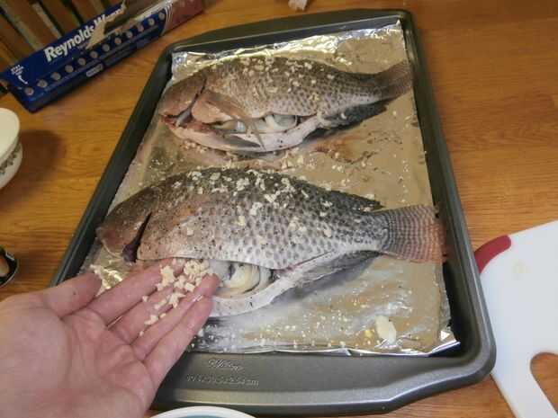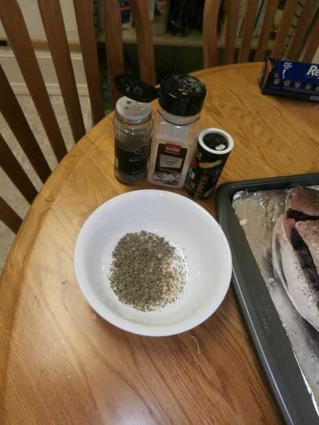 -Mezcle las especias en un tazón pequeño y frotar un poco de la mezcla en las paredes de la cavidad del vientre de cada pescado. Haremos sólo una pizca!