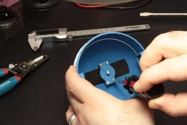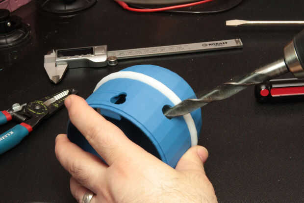 Usted tendrá que decidir donde quiere hacer un agujero para la energía - utilicé una broca de 15/32 pulgadas. No van a la rápida, puede derretir o crack de tu parte.