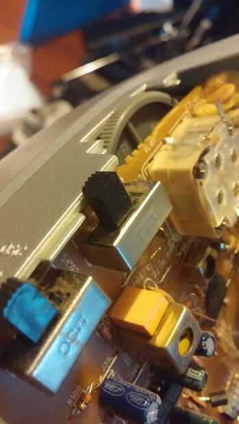 Unos interruptores y potenciómetros de control de entrada y volumen. Uno controla la afinación así.