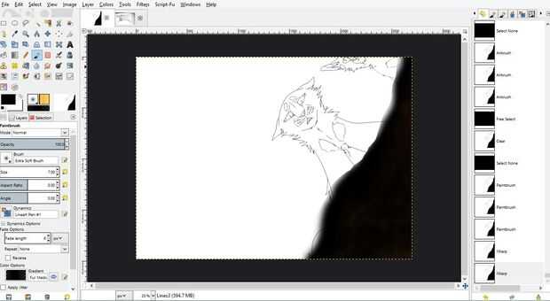 Para el lineart sí mismo, movimiento rápido y fluido funciona mejor. Marque la casilla de movimiento uniforme en el panel de opciones de herramienta y eliminará casi totalmente 'movimiento de ratón'. Elegir un duro, cepillo redondo con el tamaño de a tres o un cepillo suave con un radio de siete pixeles.