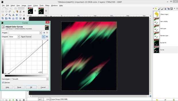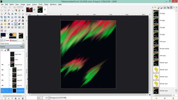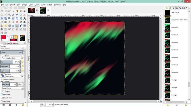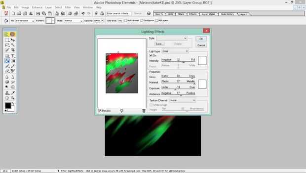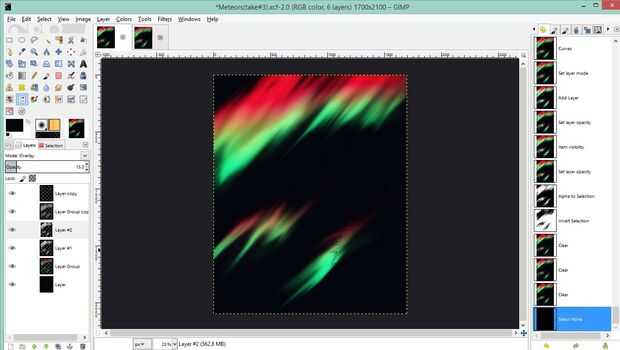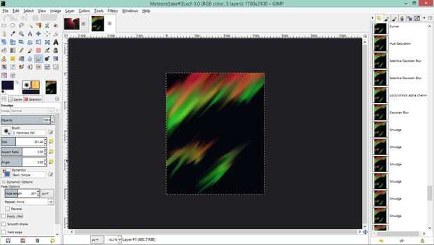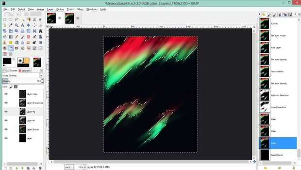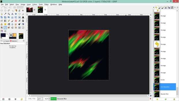 Bueno, esta parte tendrá un tiempo. Comenzar seleccionando óvalos finos, inclinados (Recuerde que para configurar la herramienta de selección a 'Añadir a la selección'). Esta selección de plumas, luego rellenar con el color (o colores) de su elección. Llene la capa de fondo con azul oscuro o cualquier color usted desea. Elegir un ajuste dinámico con cónicas (usted puede hacer su propio en la dinámica edición de ficha). Establecer la longitud de transición a algo alta y el modo de repetición en 'onda triangular'. Rápidamente dibuje líneas cónicas a través de la Aurora. Les difuminar lo suficiente como para que mezcle. Aclarar la Aurora con la herramienta curvas. Guarda la imagen como un PSD (archivo de Photoshop nativo) y abrirlo en Photoshop. Uso de efectos de iluminación para iluminar la Aurora. Si no tienes Photoshop, puedes omitir este paso o intente utilizar efectos de iluminación del gimp con la configuración de algo similar a lo que está en la foto superior. Guarde su trabajo y abierto respaldo en gimp. Duplicar la capa Aurora y utilice la herramienta dedo para 'desenfoque'. Bajar la opacidad de la capa. Seleccione más óvalos finos, inclinados. Una vez más, pluma de la selección, pero esta vez, lo llene con blanco (asegúrate de que estás en una nueva capa). Ajuste el modo de capa a 'superponer', baje la opacidad y duplícalo. Seleccione la capa Aurora original utilizando capa > transparencia > alfa a selección. Invertir la selección y claro todo dentro de la selección en cada una de las capas de la Aurora.