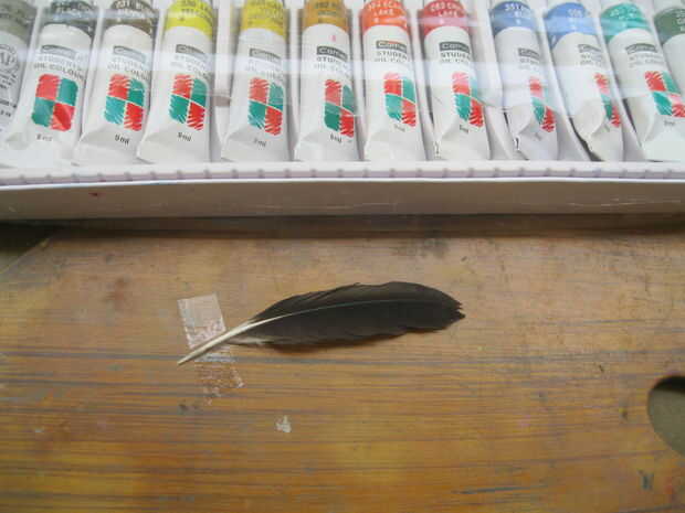 VintajPaso a pasoPendientes de la plumaCrear hermosos aretes vibrante con capas de plumas y un encanto de hoja de Vintaj!Paso 1: coincidir cuatro plumas, dos para cada pendiente. Uno debe ser ligeramente más grande que el otro para crear un look comp