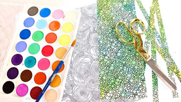 Por último, si tienes una divertida impresión te gusta, simplemente copia en papel de pegatina y corta tiras del tamaño que desee. Pintar la página con acuarelas o color con marcadores de interés extra!