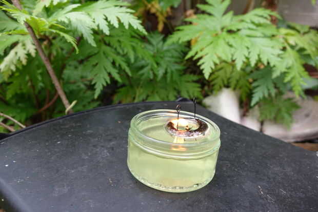 Utilizar un frasco de vidrio para que pueda ver el color y el nivel y la mecha.