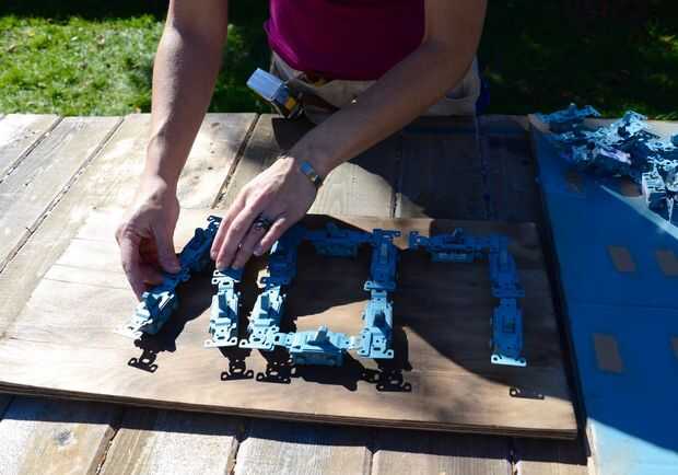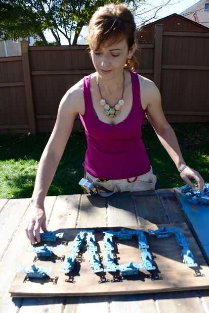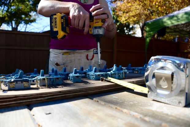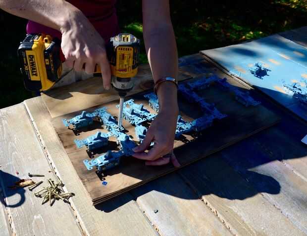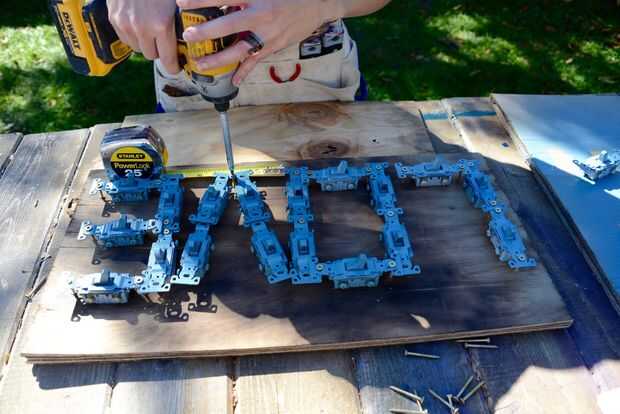 Luego une los interruptores de luz pintados a la madera con mi favorito tornillos de Spax.