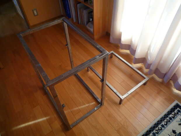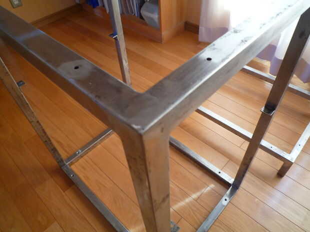 Se prepara el armazón de hierro para llenar para arriba una caja de madera. Se hace el agujero para parar en un tornillo.