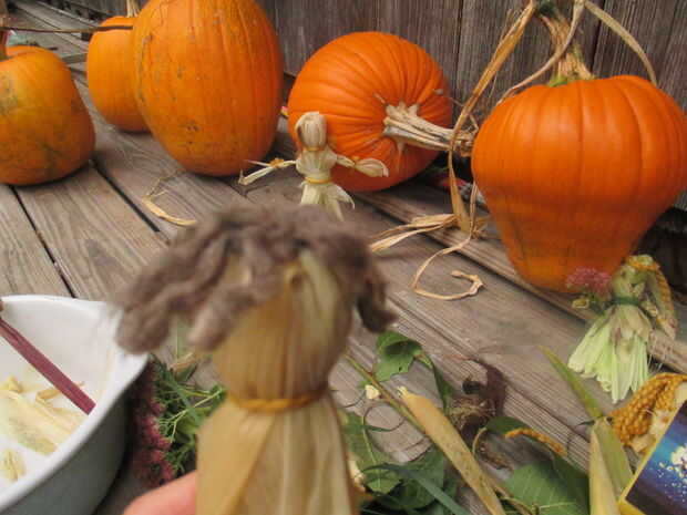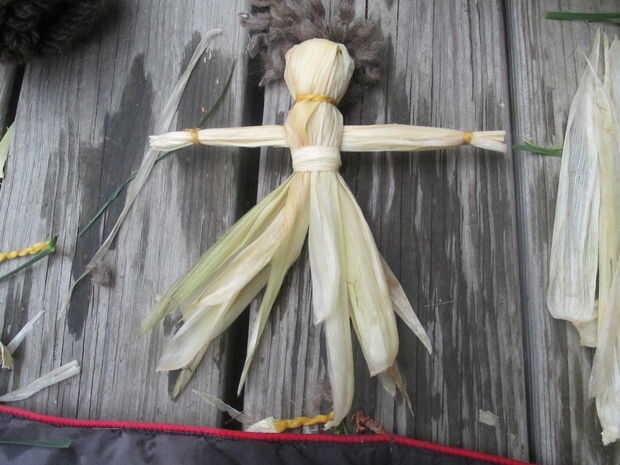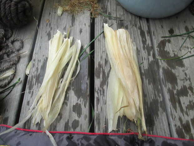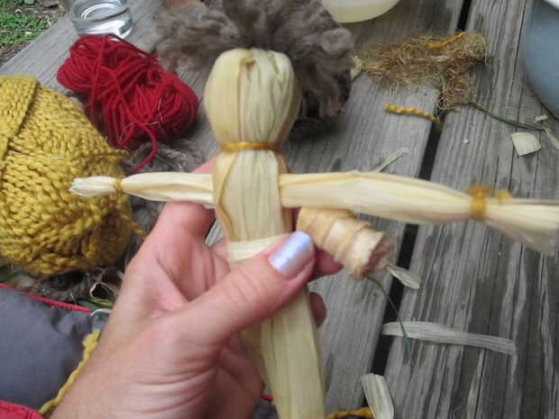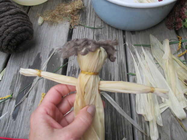 Separar hojas para las piernas y utilice algún medio para envolver debajo y alrededor de la parte posterior a la entrepierna de forma. (abdomen en la parte posterior del cinturón)