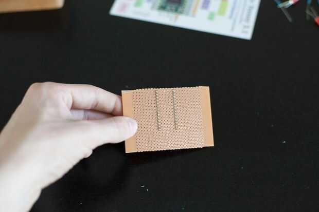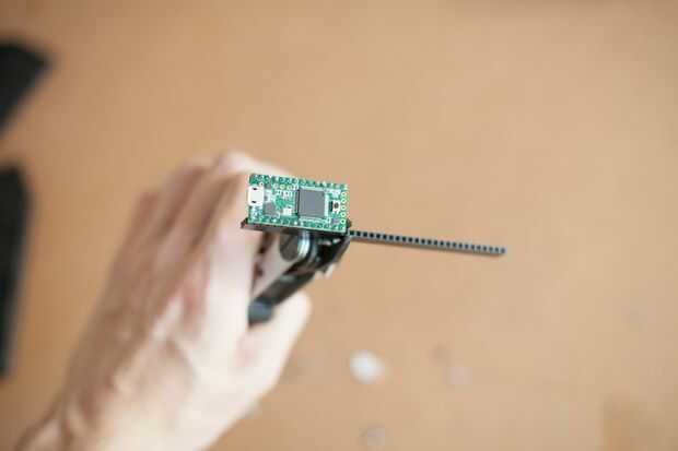 Prueba de ajuste de la Junta y recortar si es necesario. Deje unos pasadores a cada lado de la teensy.