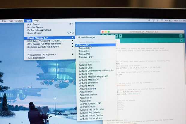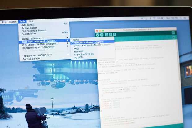 Cuando desea subir el sketch, establece la Junta Directiva en su versión Teensy y cambiar "USB tipo" a "Teclado + ratón + Joystick"