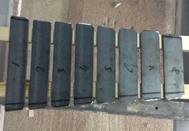 Cortar la barra de metal en 8 pistas de min max - 10cm de 15cm.