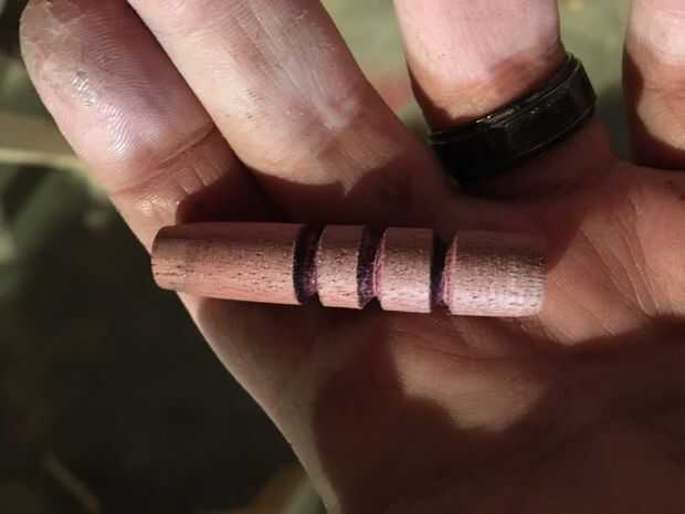 Ahora vuelta hacia abajo a tamaño y asegúrese de que los extremos son exactamente del mismo tamaño que sus bujes, también Asegúrese de usar los casquillos apropiados ya que esto hará que el lápiz forma el hardware, quería embutido alguna piedra en este caso, así que los 3 líneas de corte en un extremo.