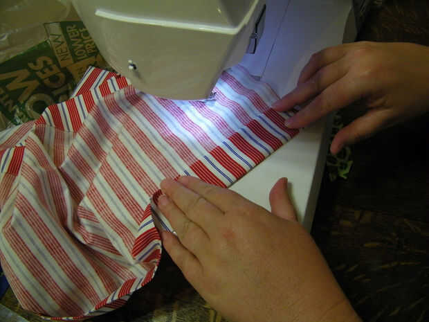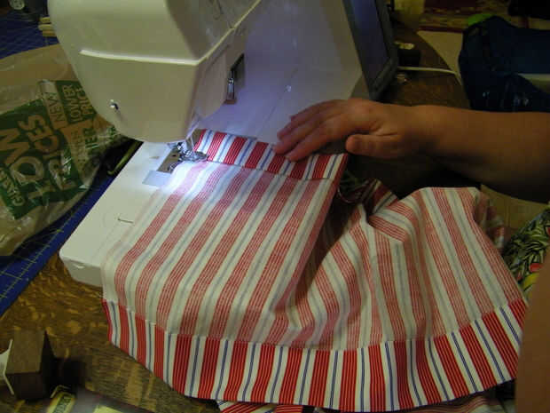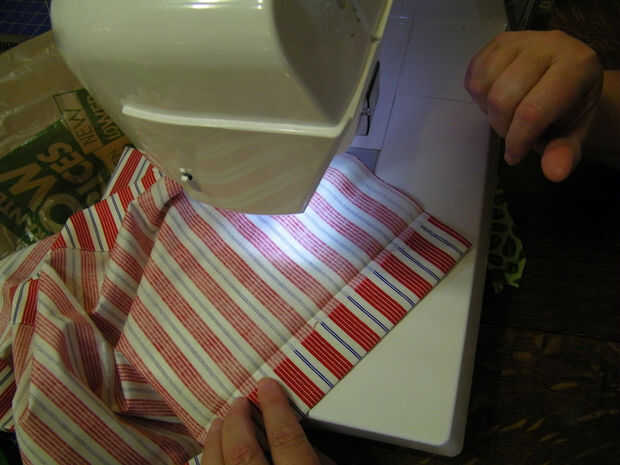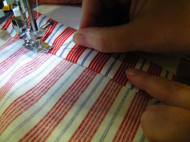 Cuidadosamente le planche un dobladillo doble pliegue en los cuatro lados de la tela.