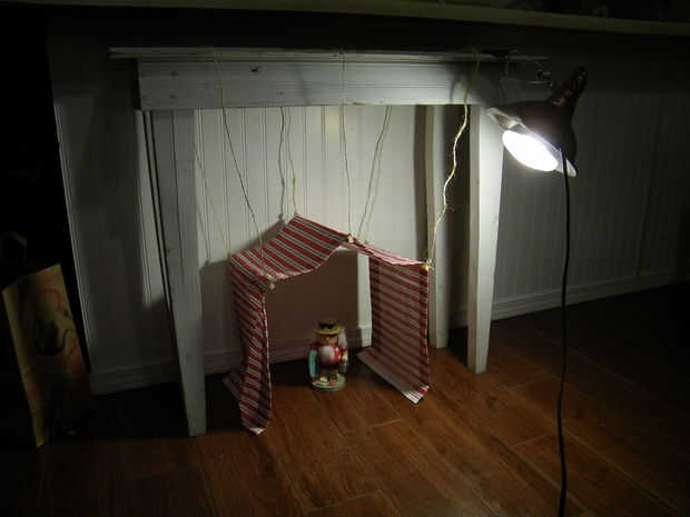 Para la tienda de juguetes, utilizamos cordeles y una tabla para colgar para arriba.