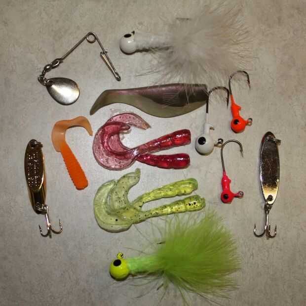 También hay una variedad de plantillas y cabezas de jig de varios tamaños y colores que funcionan bien en la mayoría de las áreas en que he encontré así como un par de cucharas pequeñas y una ruleta para las cabezas de jig.
