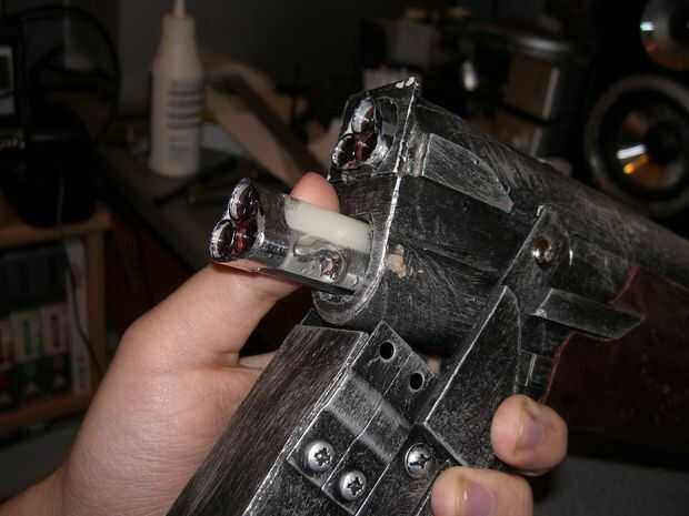 La escopeta es una escopeta bastante normal, las conchas son la parte especial, cada cáscara se compone de tres cámaras o 'frascos' cada uno cáscara contiene tres sustancias,
