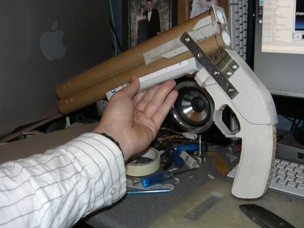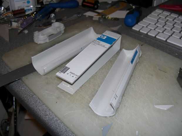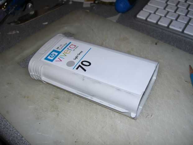 En primer lugar fija una base en la parte inferior del cañón, luego tomó un cartucho de tinta HP y dividir ambos lados de estos luego coloque sobre la base.