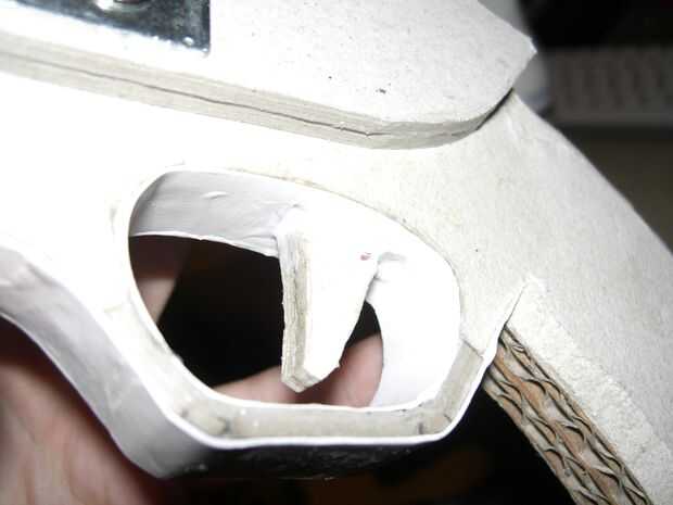 Luego añadí un disparo dentro del guardamonte. Con unos pedacitos de la tarjeta de corte a la forma.